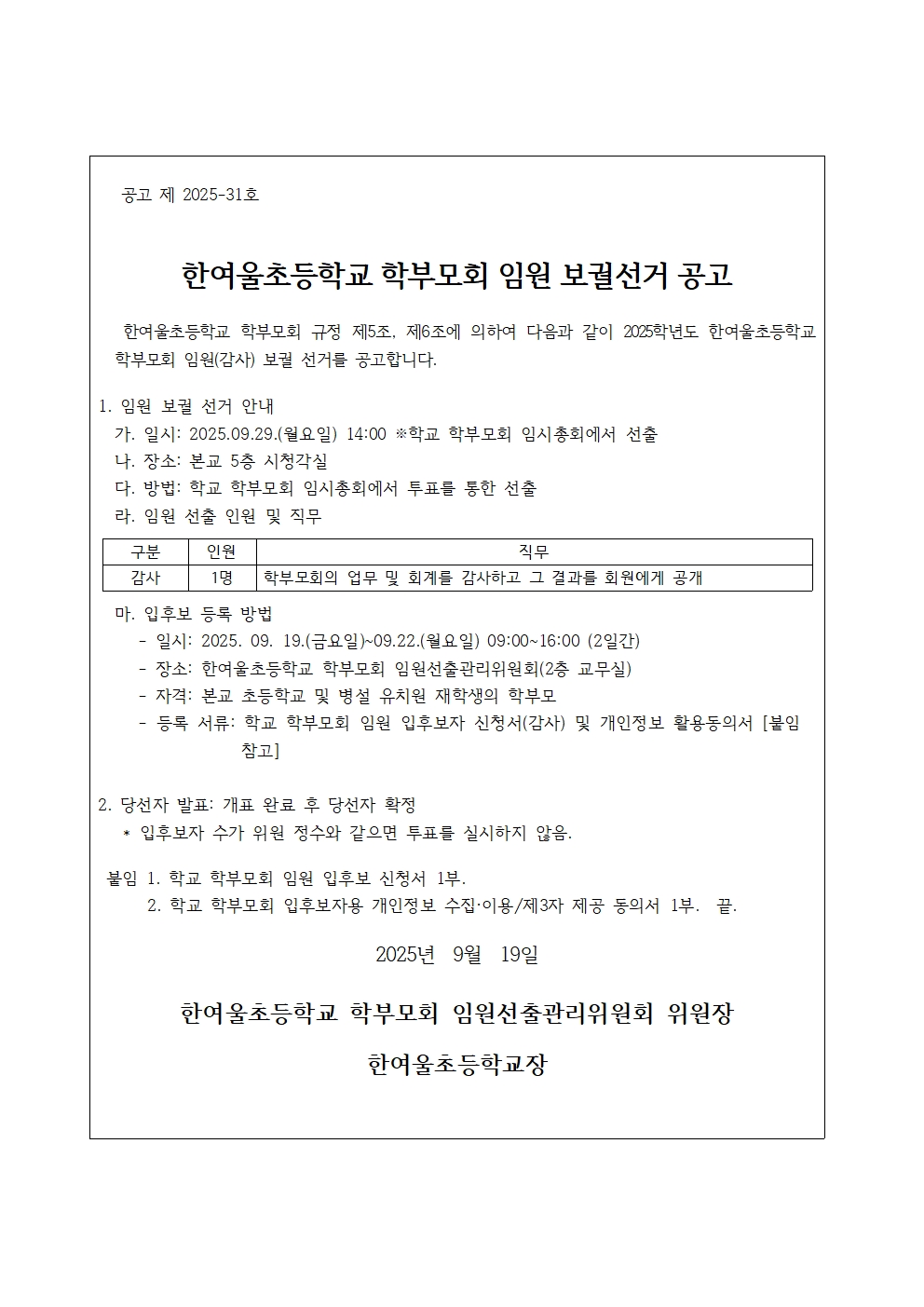 2025 ÇÑ¿©¿ïÃʵîÇб³ Çкθðȸ ÀÓ¿ø º¸±È ¼±°Å °ø°í.hwpx (56.38KB)