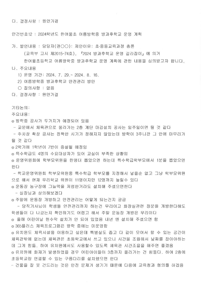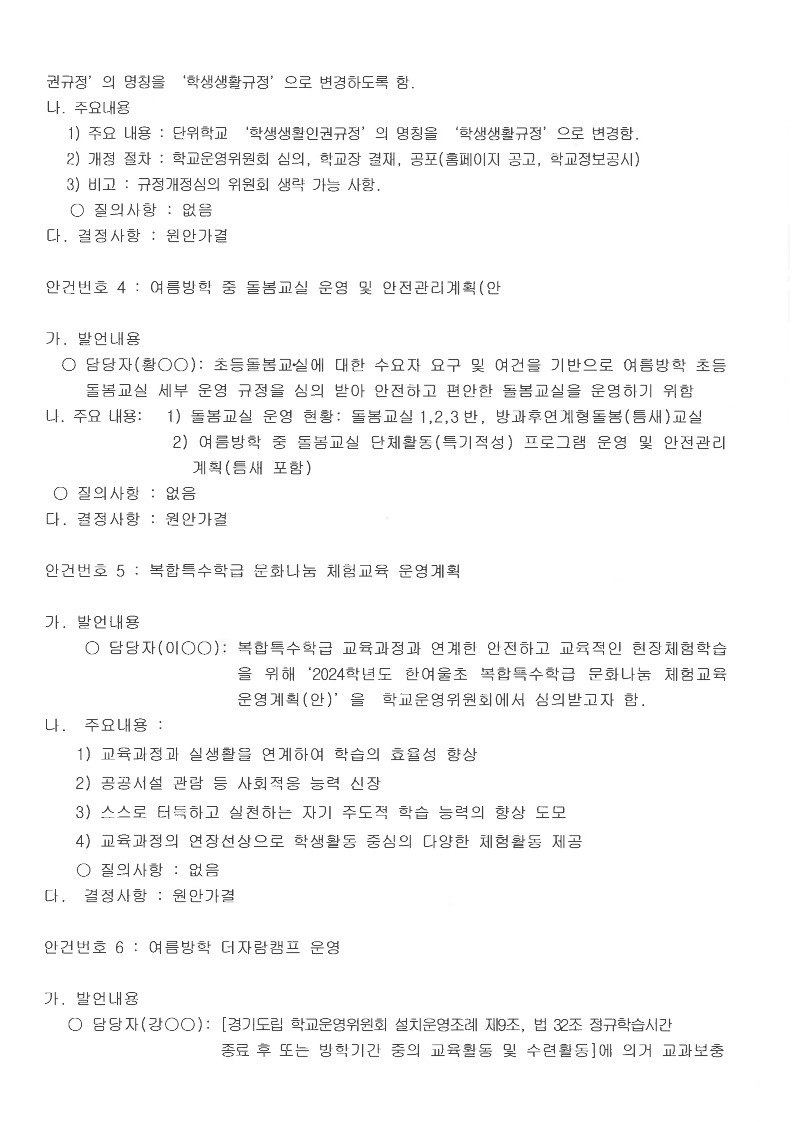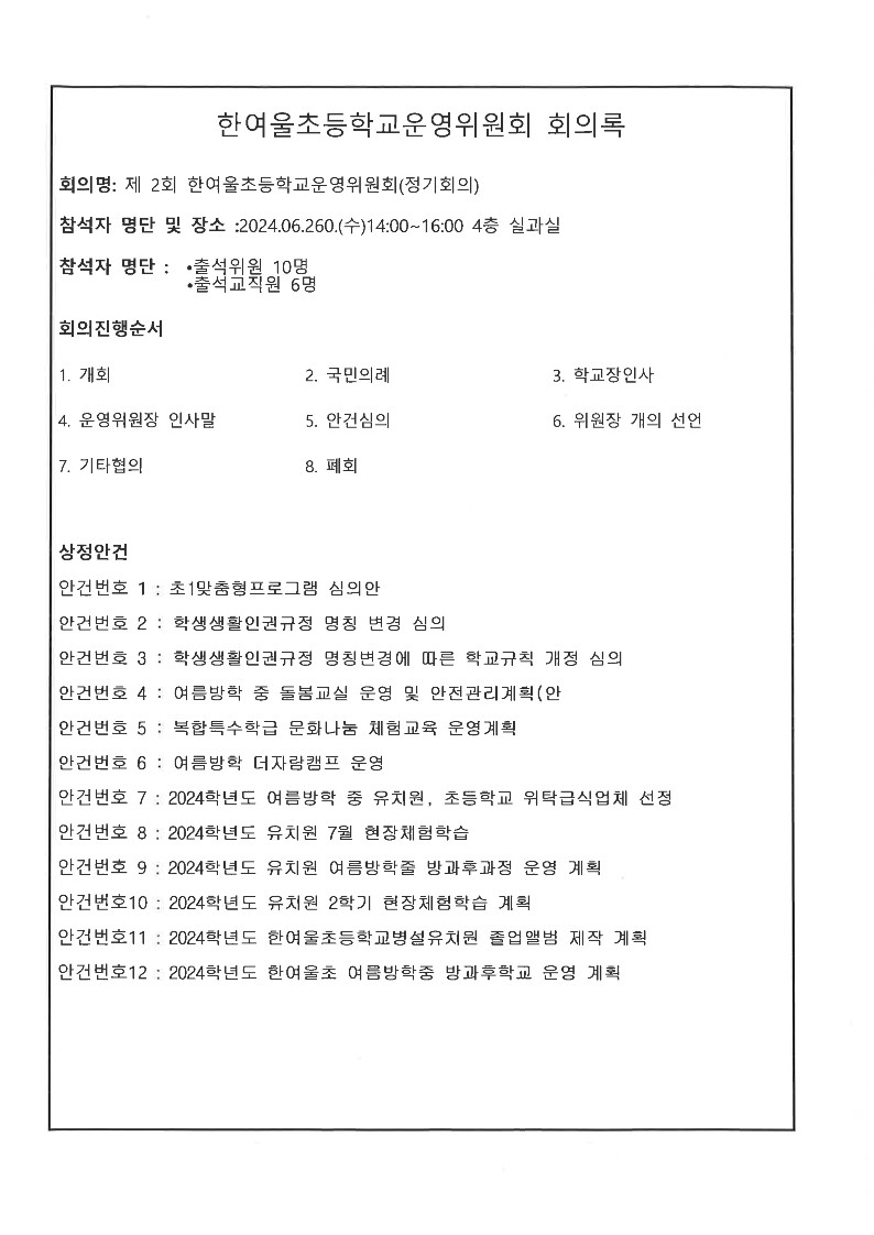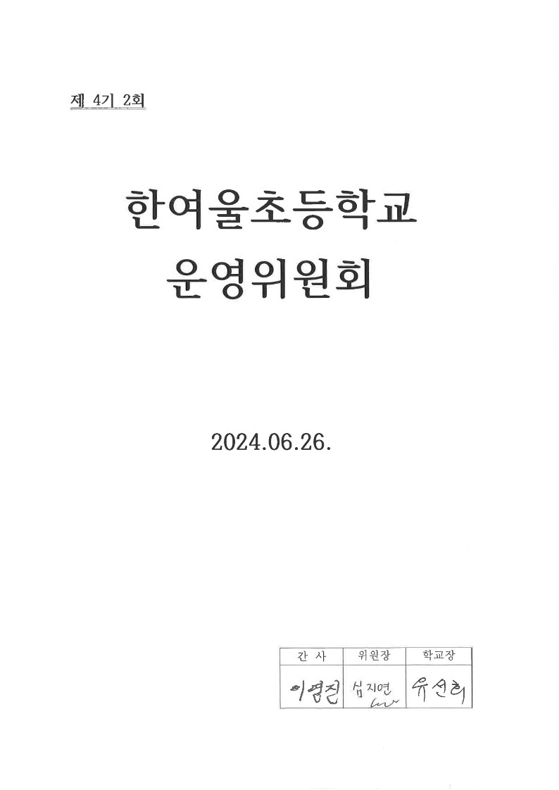 Á¦4±â Á¦1ȸ ÇÑ¿©¿ïÃʵîÇб³¿î¿µÀ§¿øÈ¸ ȸÀÇ·Ï